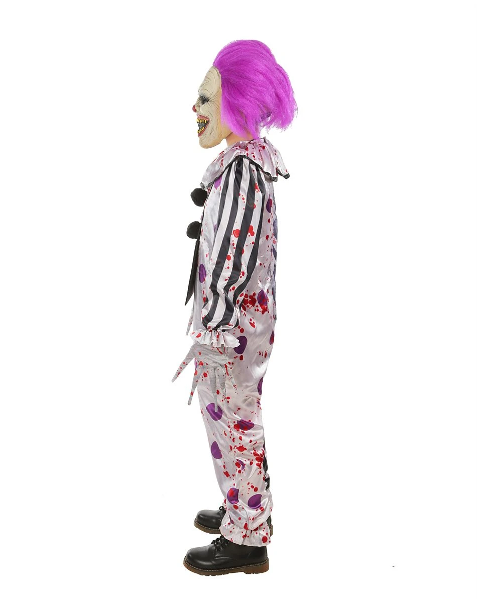 Who wants a hug? Only the brave will be lining up to hug you in this Kids Hugz the Clown Costume! This blood-spattered jumpsuit, spooky clown grin, and talon-like gloves are sure to be a spectacularly scary hit!