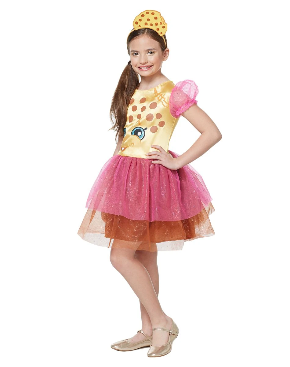 Dress as the cutest and shyest cookie around with this officially licensed costume! Featuring Kookie Cookie’s face on the front and sparkly pink skirt and puffy sleeves, this costume is perfect for any Shopkins fan!