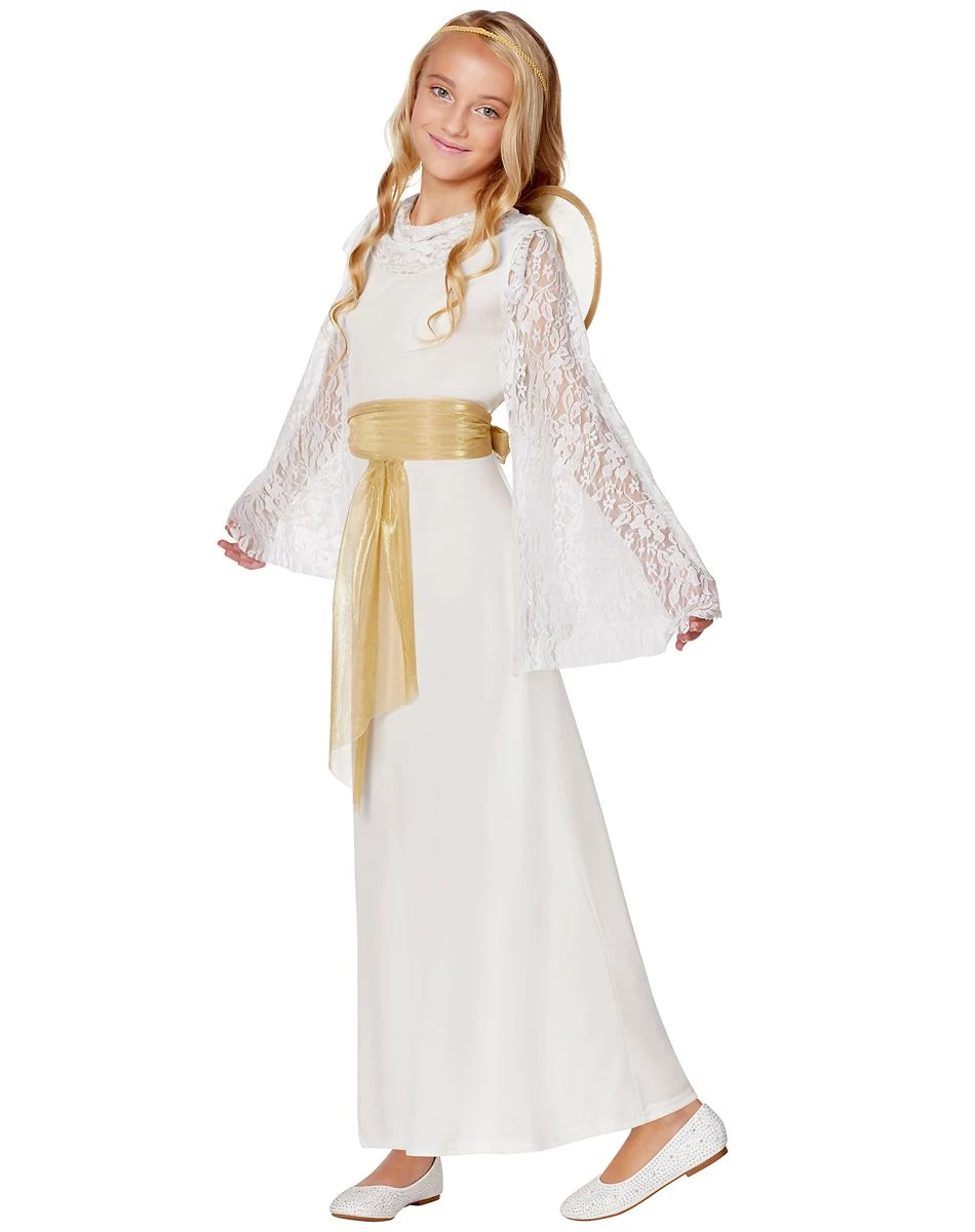 You’ll look positively heavenly in this lovely lace angel costume! The angelic look features flowing lace sleeves, shimmering waist sash and a halo headband for a costume that’s sure to have everyone singing your praises! It’s a miracle!
