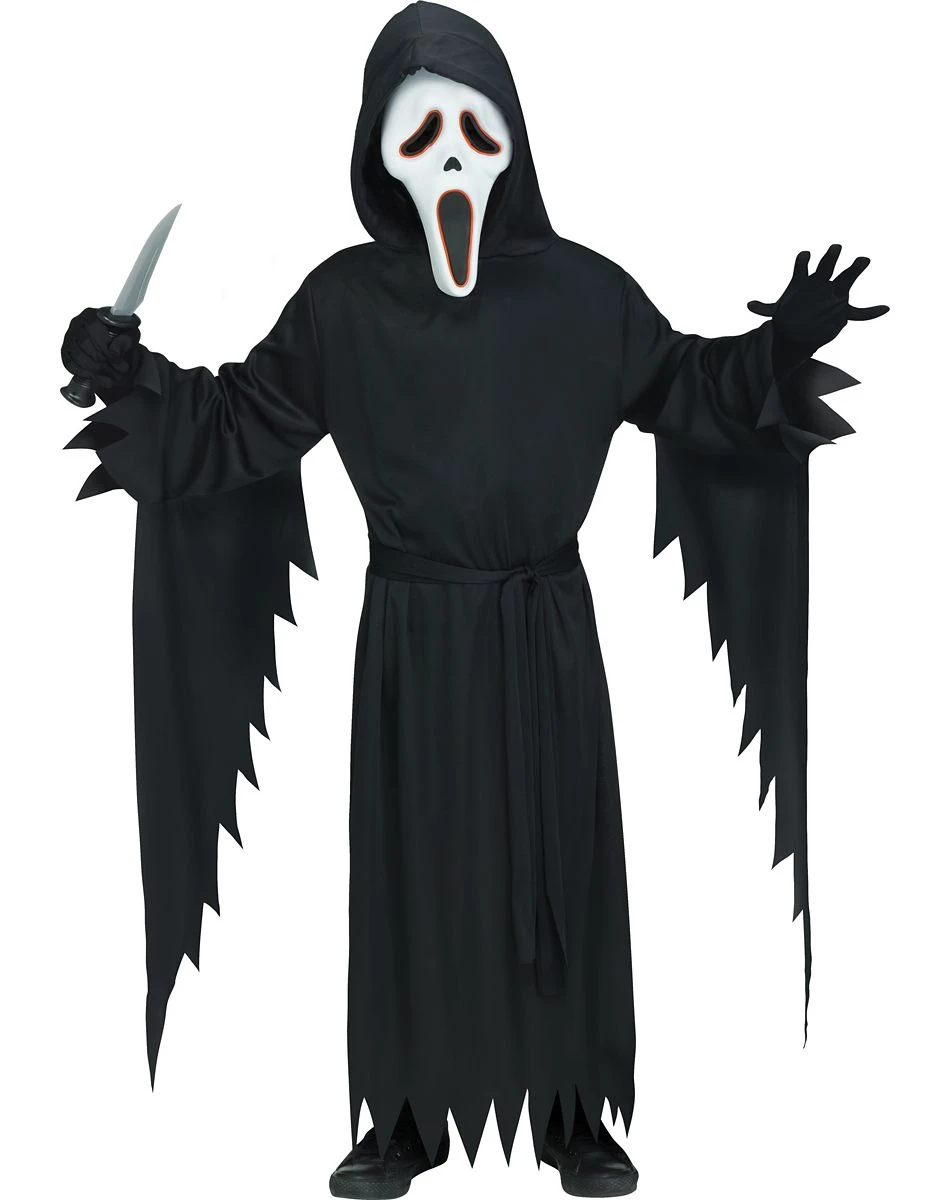 Go for the maximum scare factor this Halloween when you dress up in this official Kids Light-Up Ghost Face (R) costume! With its hooded robe, light-up E.L. Ghost Face (R) mask and belt, you’ll look truly terrifying! If you’re looking for a scary costume this year, you can’t go wrong as Ghost Face (R)!