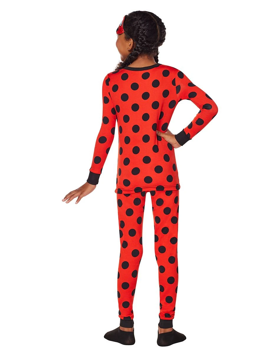 Go to bed looking just like your favorite hero when you dress up in this officially licensed Kids Miraculous Ladybug Pajama Set. This sweet set of pajamas are perfect for any fan of the show and with the polka dot pattern all over the pants and shirt you’ll look ready to save the day in no time.Â