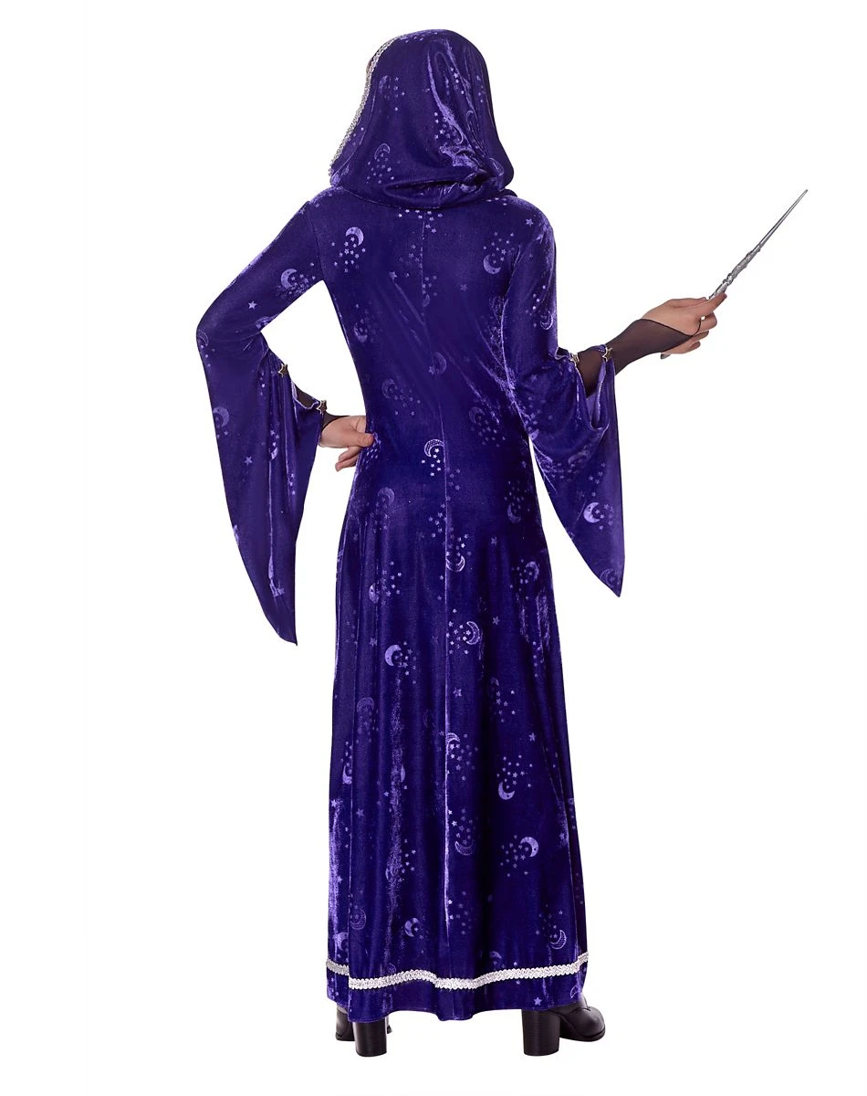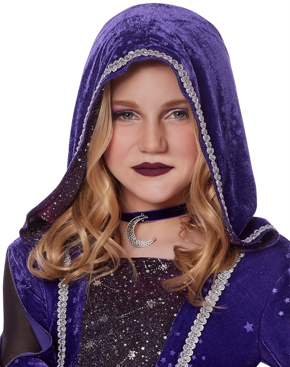 Your little one will become a master of magic and witchcraft when they put on this Star Sorceress Costume! This beautiful costume includes a hooded velvet dress, a choker that shines bright, and a wand so they can cast spells all Halloween long.