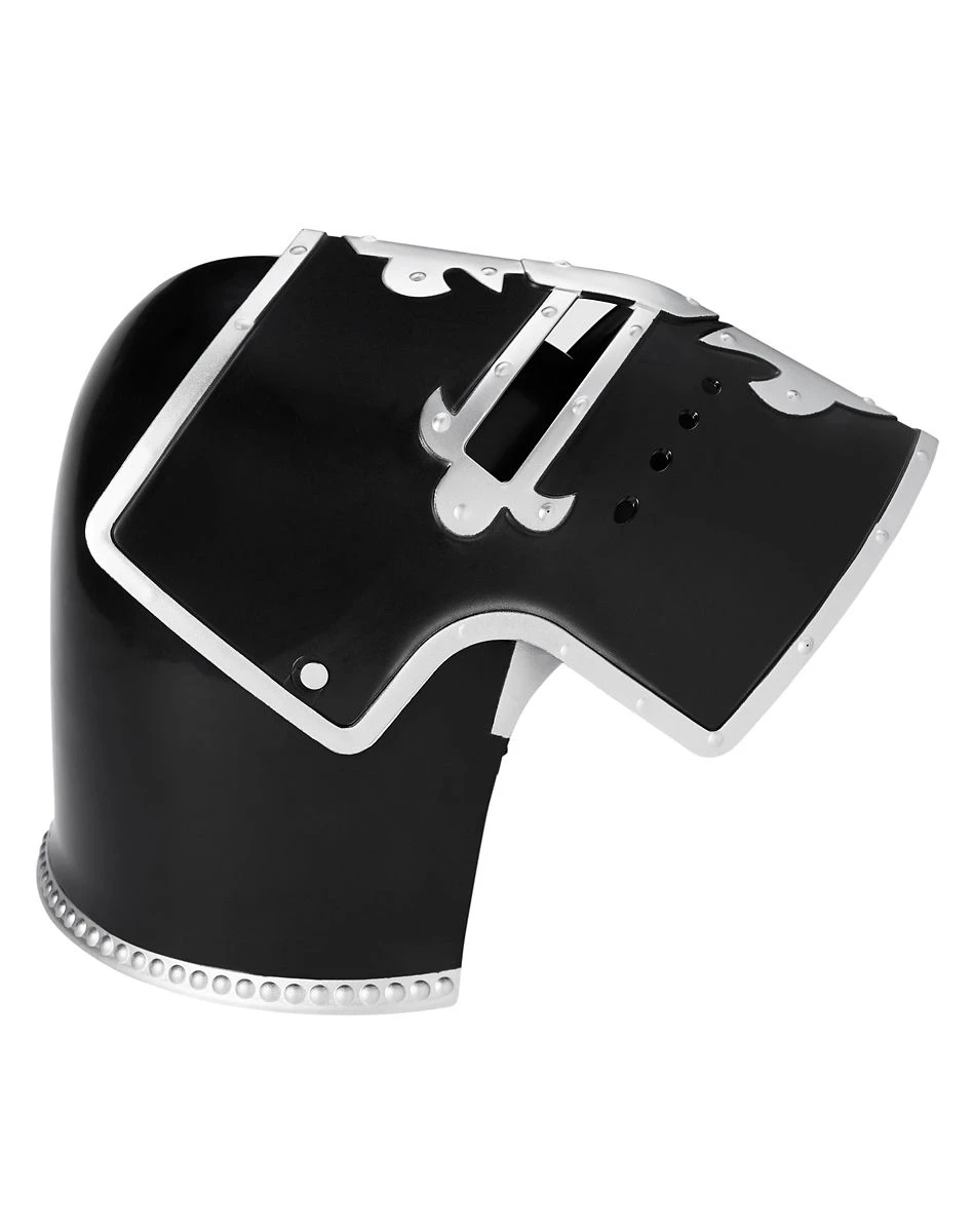 You’ll be the knight in shining armor in this helmet. With a sleek black body, large breathing holes, and ornate silver details, this knight helmet is fit for a nobleman! This knight helmet features a lift-up face plate in case of snacks.