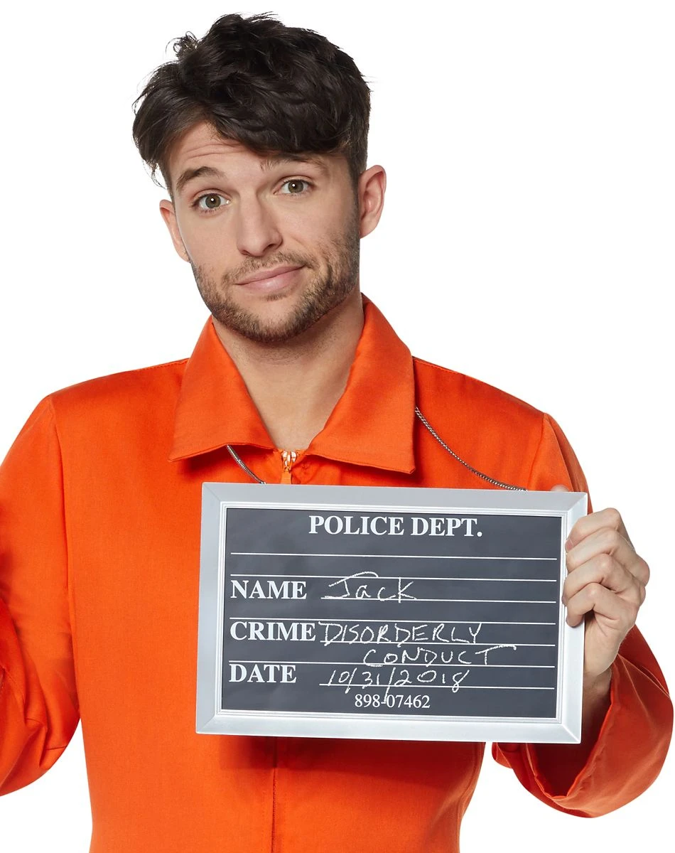 Complete your convict costume with this mugshot sign to let everyone know what crime you’ve committed.