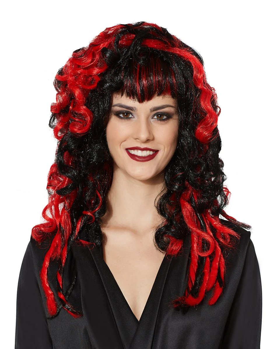 Turn up the heat of any wicked womens costume with this wild Black Spider Nightmare wig! With fiery red and midnight black curls, dreadlocks, twists, and sharp-cut bangs, this horror Halloween wig is ideal for any stylish devil, vampiress, or Gothic princess.