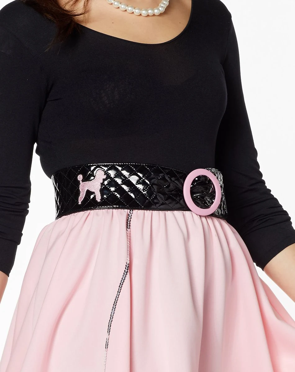 Add some extra flare to your ’50s look when you wear this adorable quilted poodle belt! It’s perfect for every doo-wop party!
