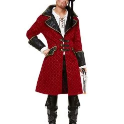 Storm the seas in style when you finish off your pirate costume with this amazing pirate jacket! This long jacket features fibrant red fabric and black and gold-colored accents, creating a detailed look that’s fit for any pirate captain!