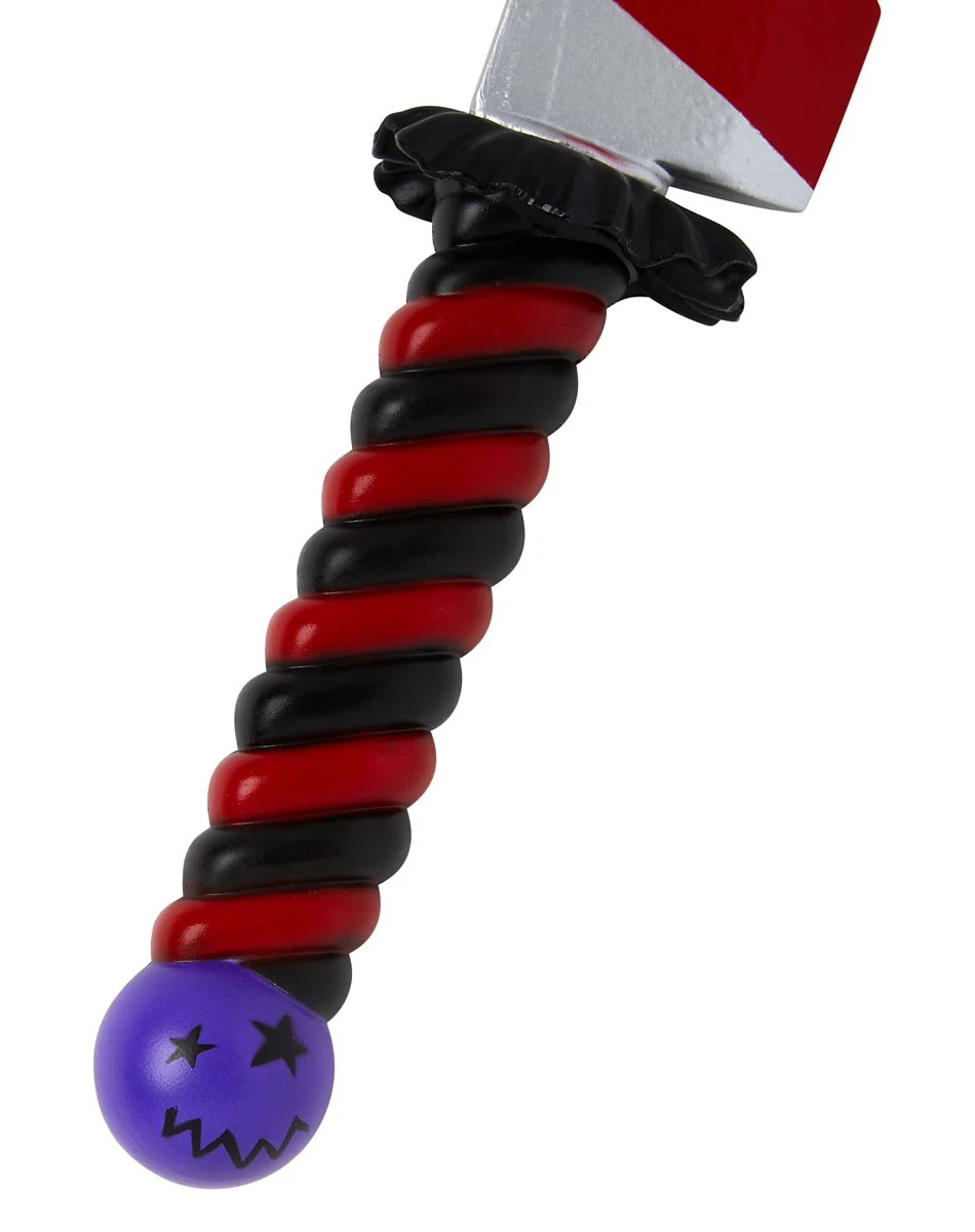 Add some fright to your freak show with this Scary Clown Machete Prop! This colorful machete features red, silver, black, and purple detailing on the blade, as well as matching red and black striped detailing on the hilt. Complete your terrifying clown costume with this petrifying prop!