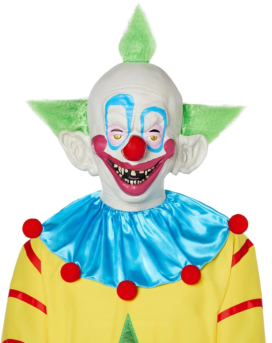 Give your Halloween a scary twist with this official Shorty Mask from Killer Klowns from Outer Space! This scary clown mask has Shorty’s terrifying smile with its broken teeth and green tufts of hair. Make everyone quiver in fear when you put on this Shorty mask. If they weren’t afraid of clowns before, they will be once they get a look at you!