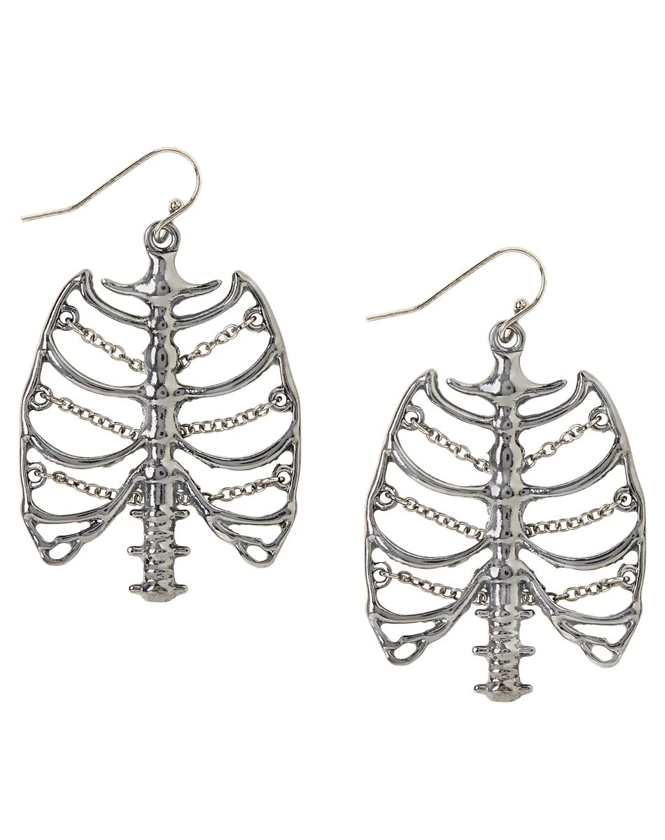 Add the perfect complement to your skeleton costume with these Rib Cage Dangle Earrings. Nobody will want to pick a bone with you!
