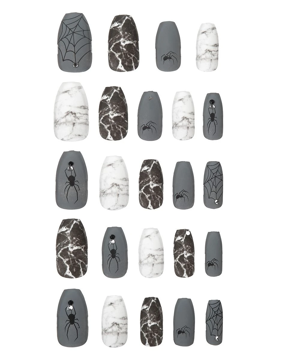 Add even more of a creepy crawly feel to your Halloween costume with these spider press on nails. These black, white and grey nails let you mix up your Halloween nails for the perfect touch of dark glamour.