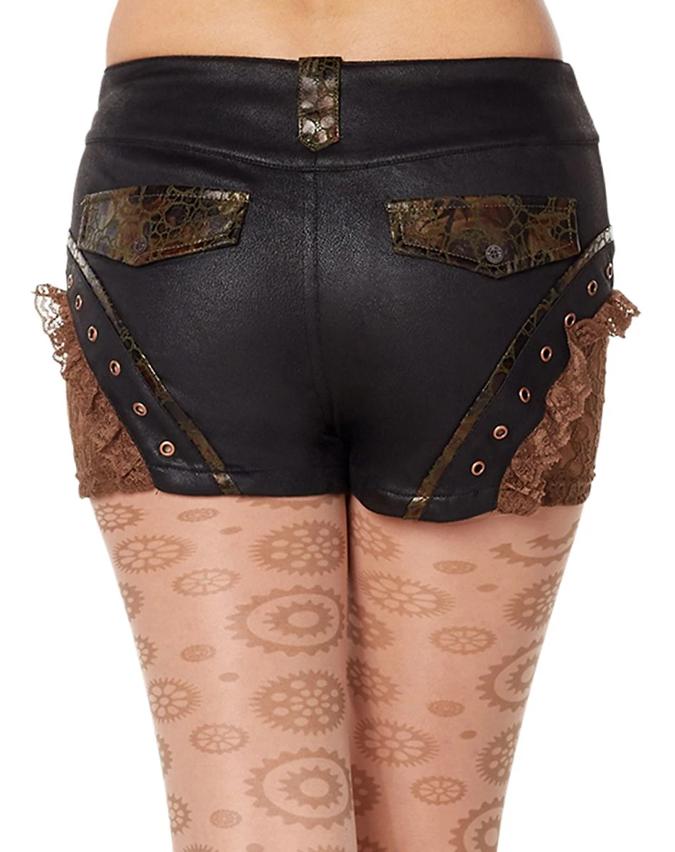Grab your best pair of goggles and your favorite Victorian-era clothes because with these steampunk shorts you’ll have everyone convinced you’ve come straight from the 19th century. These shorts are the perfect addition to any steampunk costume, featuring metal buttons and screws along with a brown lace pattern down the side. When you show up with these steampunk shorts you’ll have everyone wondering where your time machine is!