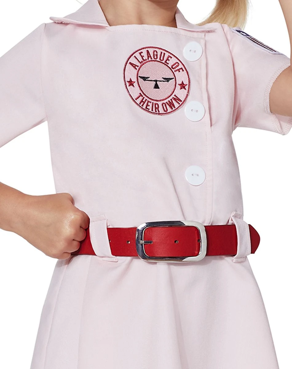 It’s time to play some baseball! Your toddler will be on the way to fame with this officially licensed Dottie costume. This Halloween is about to be a competitive one with Dottie involved, but they’ll be prepared in this stylish skater dress with adjustable belt, hat, and matching red knee high socks! Let’s get going, the game is about to begin! Batter up!
