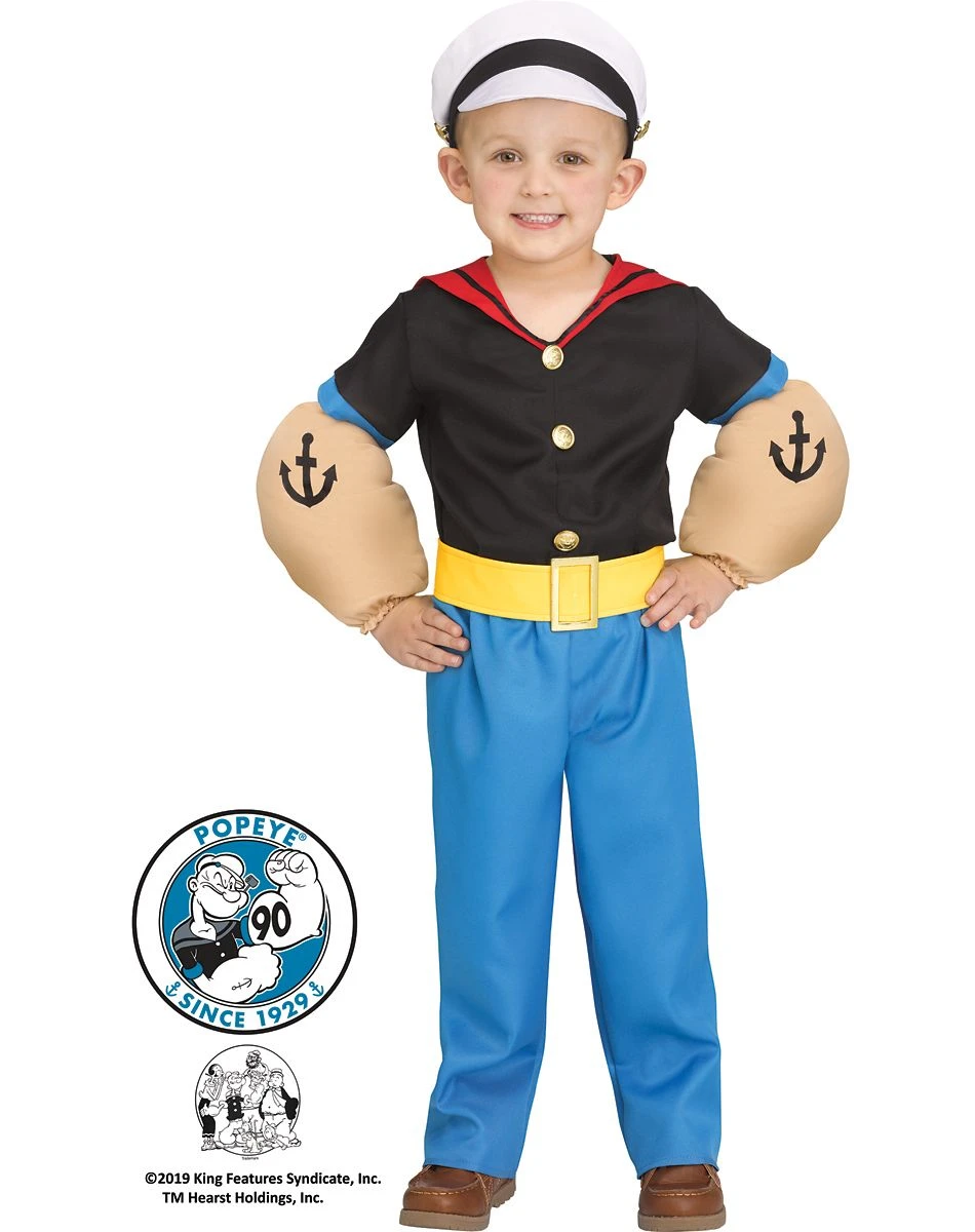 Let your little one become the tough-guy hero when you dress them up in this officially licensed Popeye costume! As if the inlcuded shirt, pants, belt, and hat weren’t enough to make your little one look just like the real thing, add the included padded arms for the ultimate authentic look. Remember to eat your spinach and you’ll be the greatest sailor in all the land!