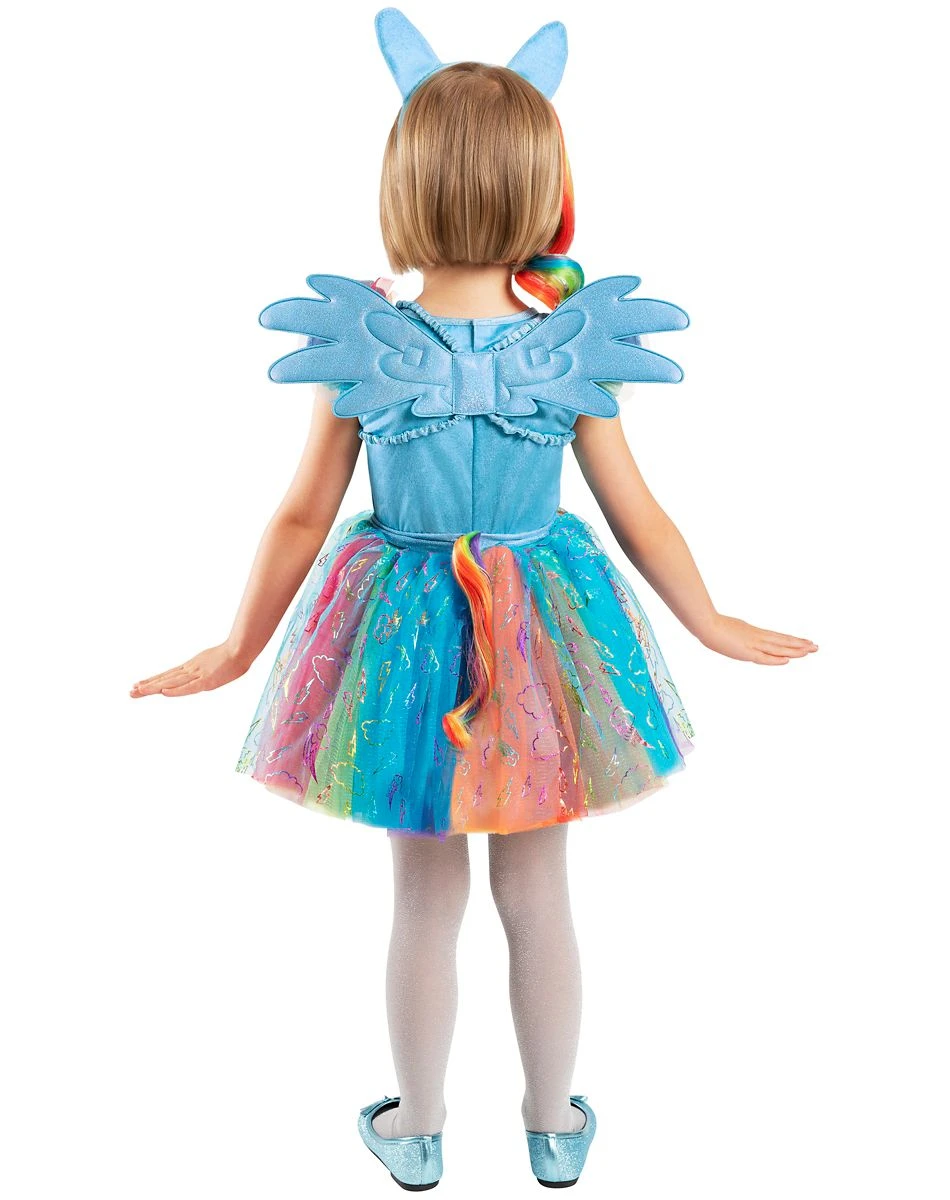 Your little one will be prancing around with joy this Halloween while wearing this officially licensed Toddler Rainbow Dash Costume. Any fan of My Little Pony will love wearing this costume that includes a colorful dress, wings, a hair accessory, and a headband. This costume will have your child feeling magical all night long!Â