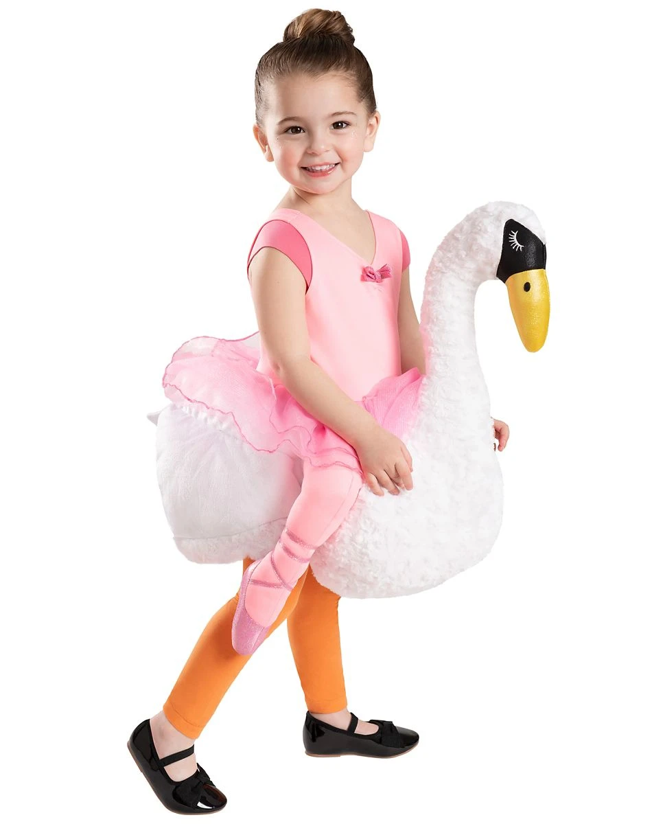 Your little one will love riding around as a majestic swan when you get them this Toddler Ride-Along Swan Costume. This easy to wear costume has everything they need to really make a splash this Halloween. This swan costume will have your toddler looking beautiful all night long.Â