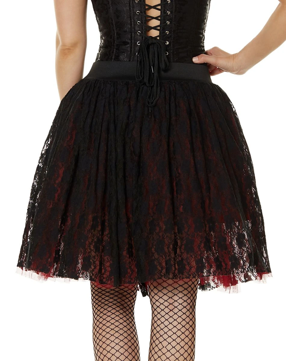 Your vampie look just got a whole lot better! This layered, lined skirt features beautiful lace detail that will have you standing out in any crowd you enter on Halloween night. Pair it with your favorite corset (sold separately) and you’ll have a complete vampire look!