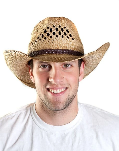 - The classic Western hat is made from natural seagrass and has a brown braided hatband.