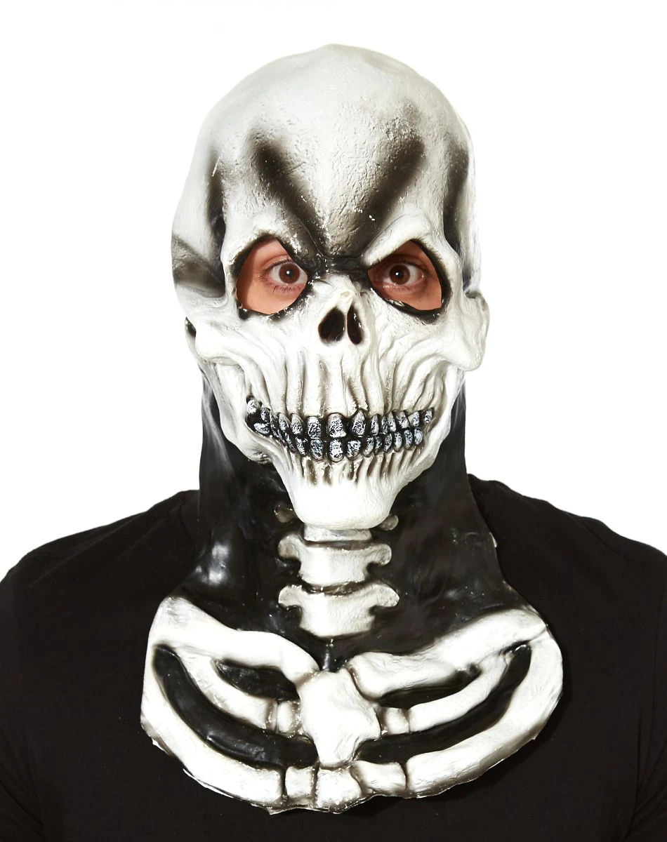 Complete your spooky bones costume when you have the White Skeleton Neck Mask. This awesome mask features skeleton skull and neck details to help make your costume even more believable.